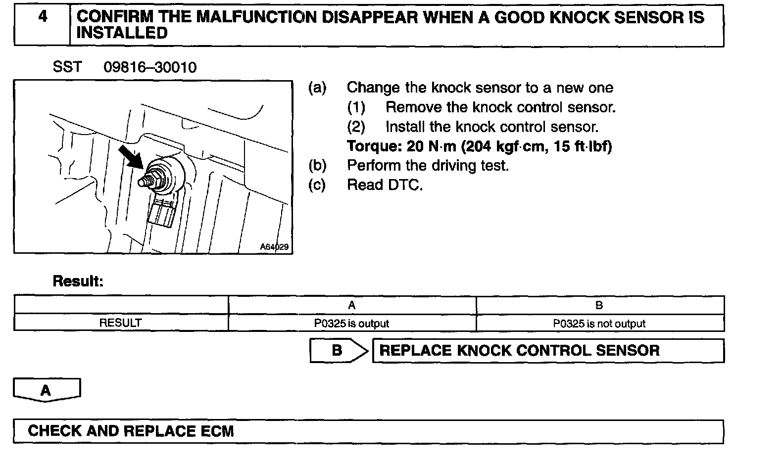 HINT: If the ECM detects above diagnosis conditions, it operates the fail safe function in which the corrective retard angle value is set to the maximum value.