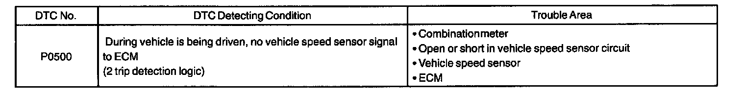 DTC P0500 VEHICLE SPEED SENSOR MALFUNCTIONCIRCUIT DESCRIPTION
