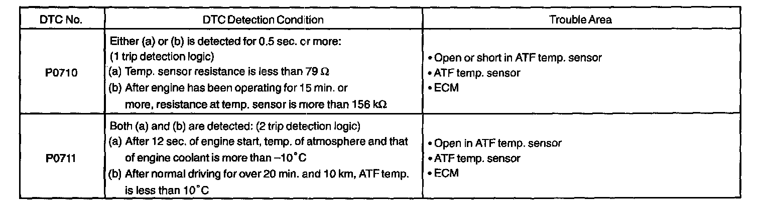 DTC P0710 TRANSMISSION FLUID TEMPERATURE SENSOR MALFUNCTIONCIRCUIT DESCRIPTION