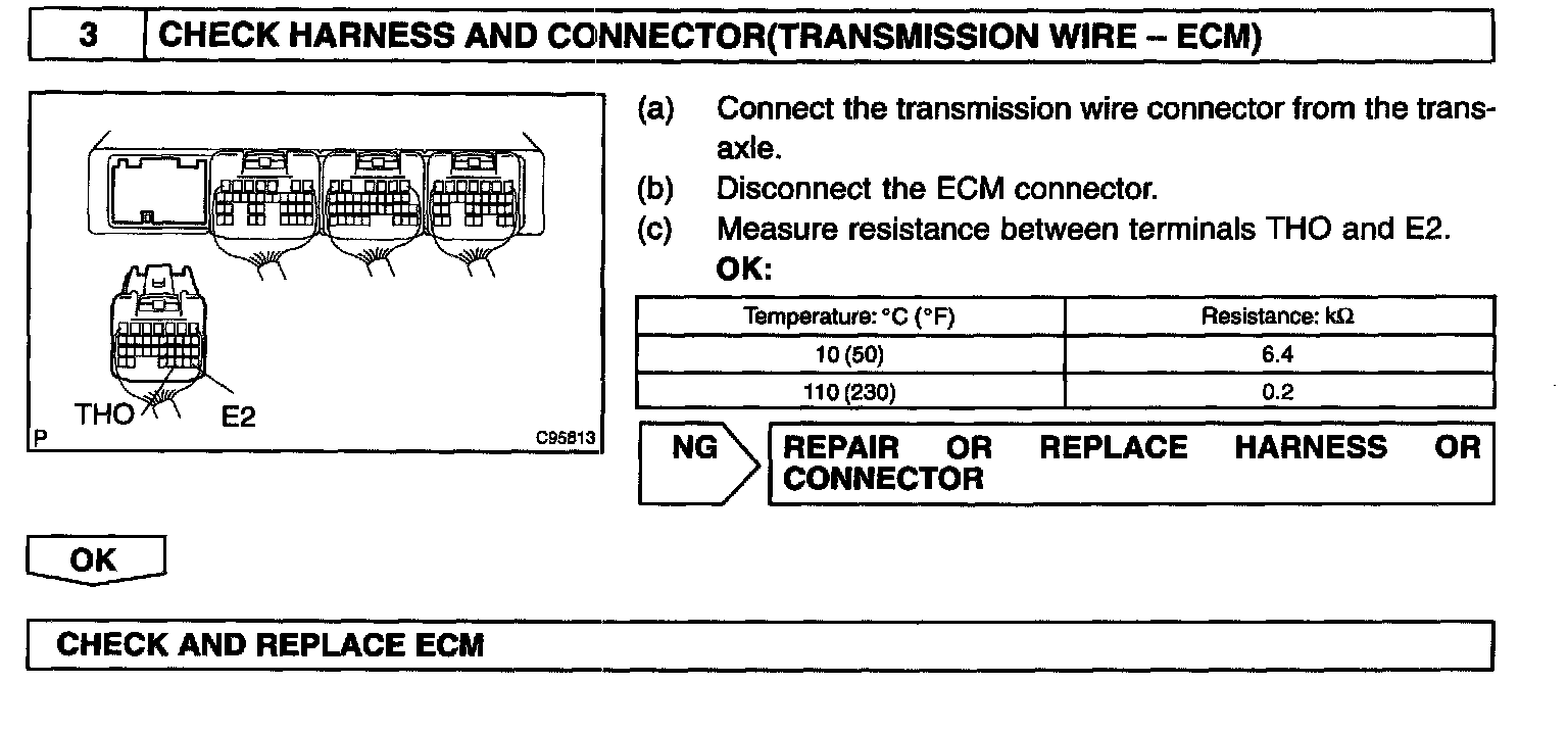 The ATF temperature sensor converts the fluid temperature into a resistance value which is input into the ECM.