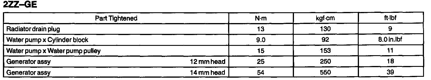 Cooling - Torque Specification: