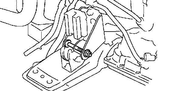 b. Remove the through bolt, detach the engine mounting insulator RR from the suspension crossmember.