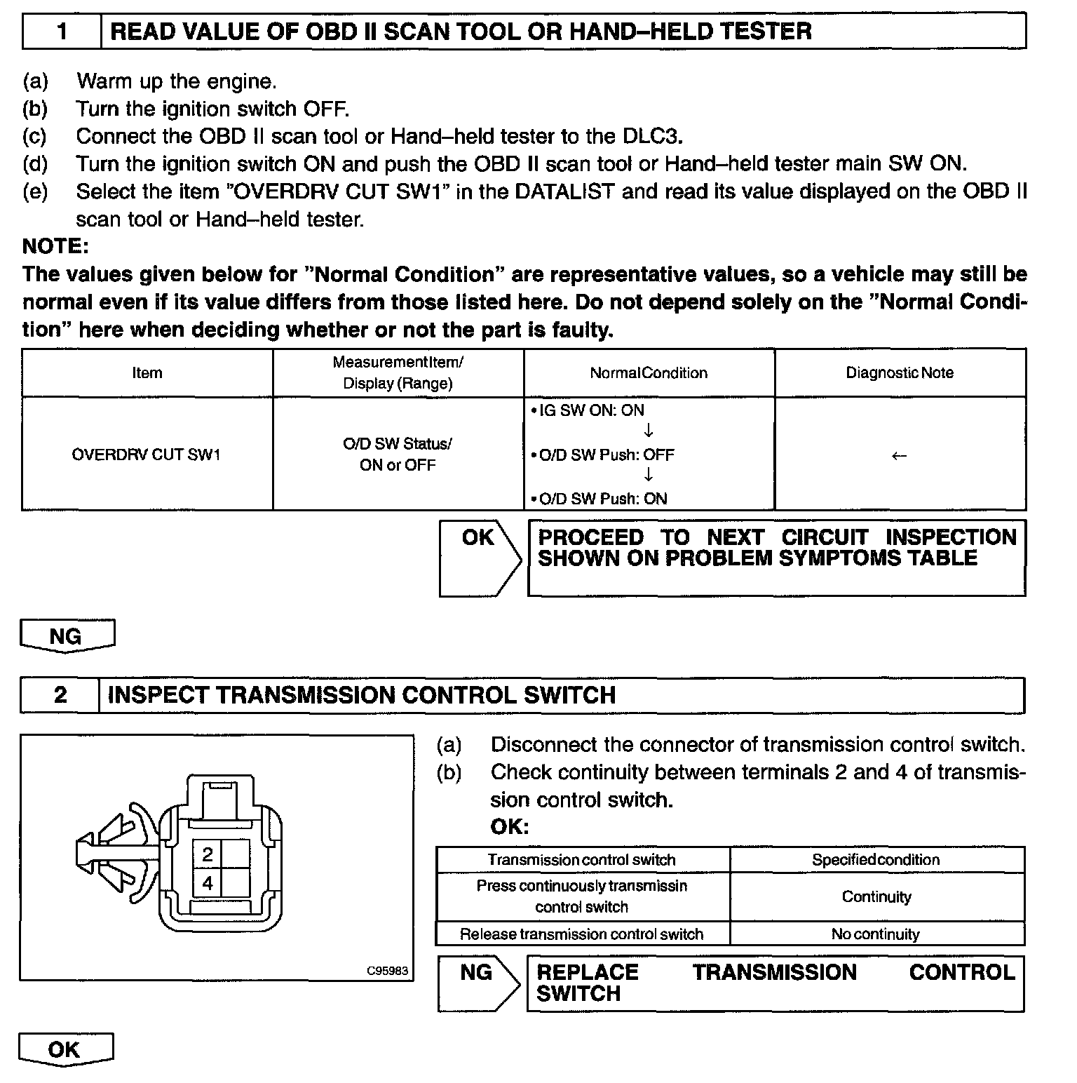 Overdrive Indicator Lamp: Testing and Inspection