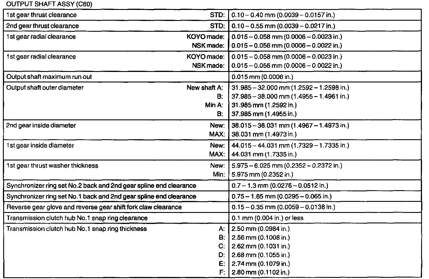 Output Shaft Assy - Service Data: