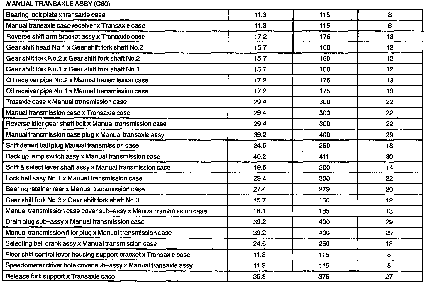 Manual Transaxle Assy - Torque Specification: