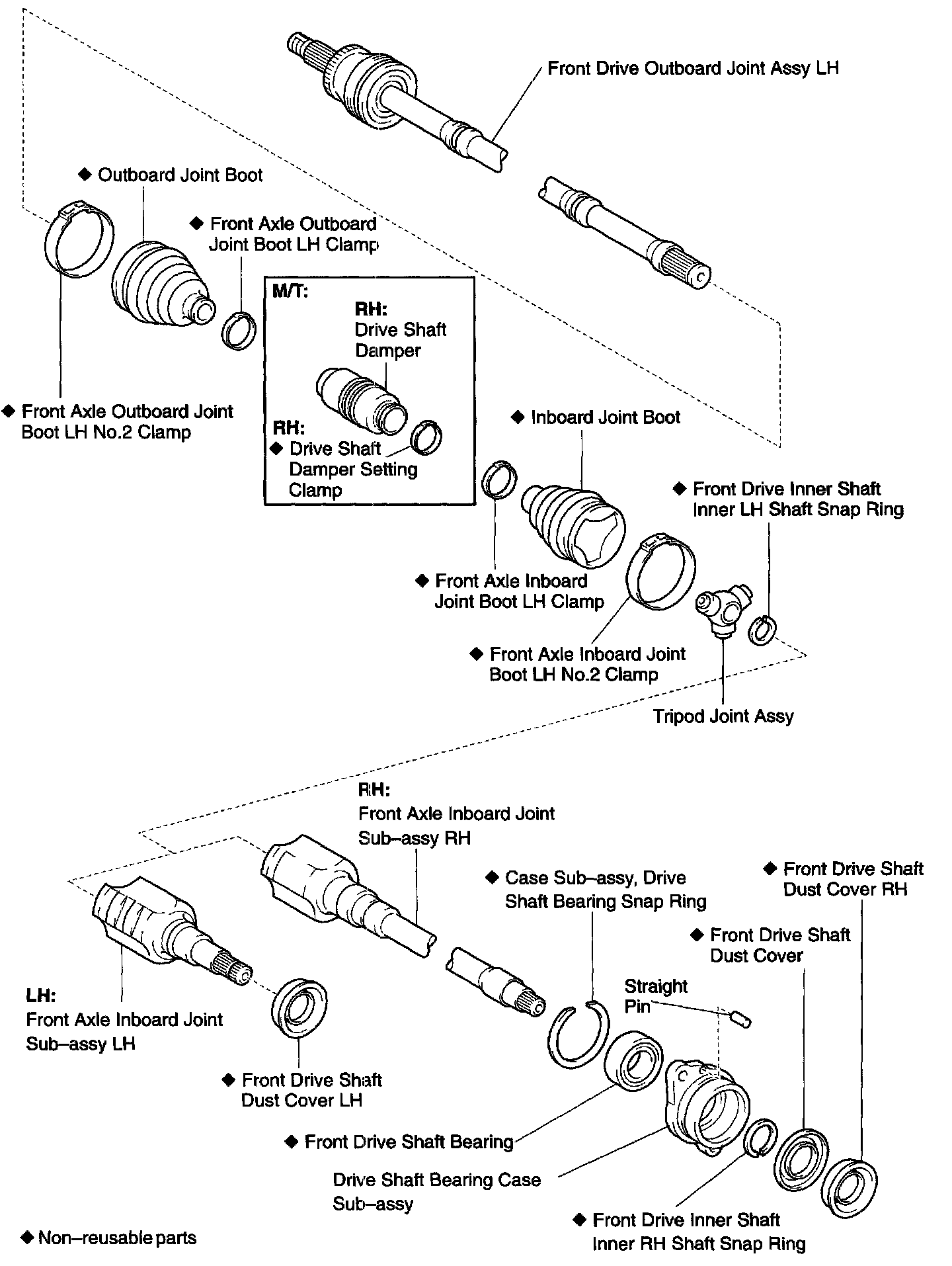 27. REMOVE DRIVE SHAFT BEARING CASE SUB ASSY (RH DRIVE SHAFT)