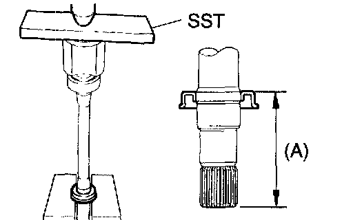 a. Using SST and a press, install a new dust cover RH until the distance (A) from the tip of center drive shaft to the dust cover RH reaches the specification, as shown in the illustration.