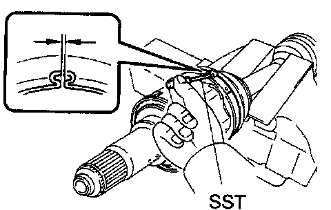 HINT: Whether the inboard joint shaft is in contact with the pinion shaft or not can be known from the sound or feeling when driving it in.