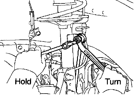 HINT: If the ball joint turns together with the nut, use a hexagon wrench (6 mm) to hold the stud.