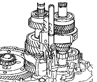 b. Remove the gear shift fork shaft No. 2, gear shift fork No. 2, gear shift fork No. 1, gear shift head No. 1 and reverse shift fork.