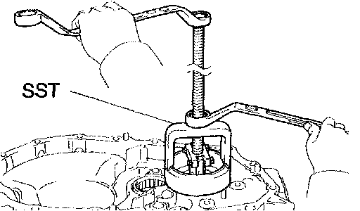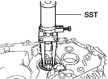 a. Using SST, remove the output shaft front bearing from the transaxle case.