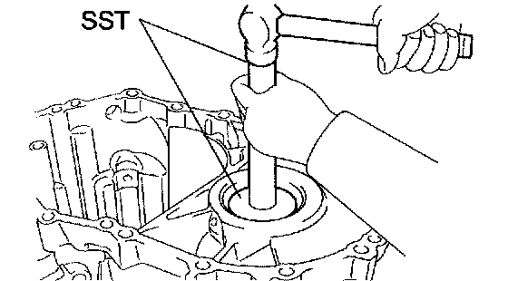a. Using SST and a hammer, remove transaxle case oil seal from the transaxle case.