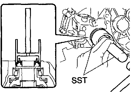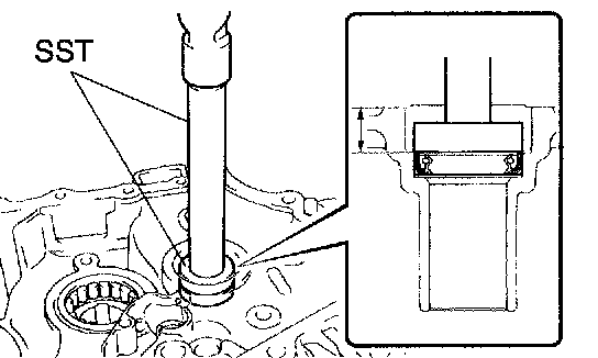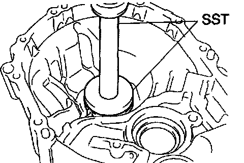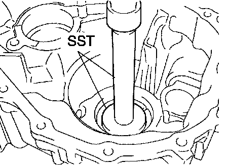 a. Using SST, remove the front transaxle case oil seal from the transaxle case.