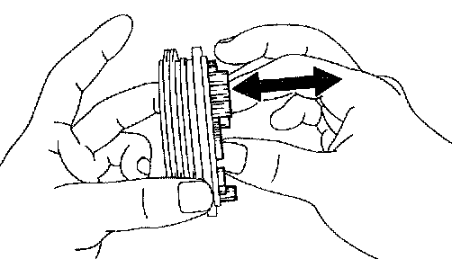 b. Check the braking effect of the synchronizer ring. Turn the synchronizer ring in one direction while pushing it to the gear cone, check that the ring locks.