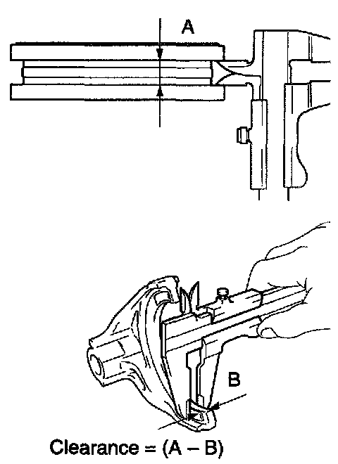 c. Using a feeler gauge, measure the clearance between the synchronizer ring back and gear spline end.
