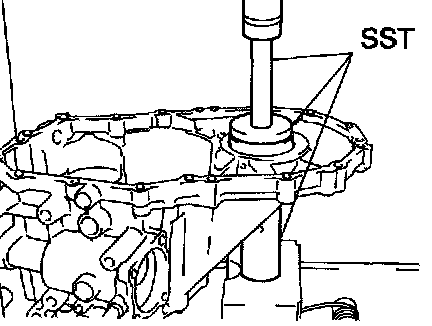 a. Using SST, remove the input shaft front bearing (outer race) from the transaxle case.