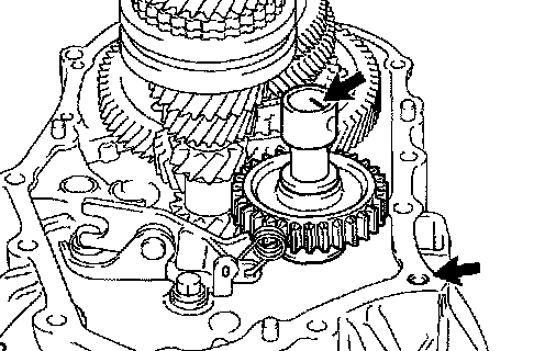 HINT: Align the mark on the reverse idler gear shaft with the bolt hole shown in the illustration.