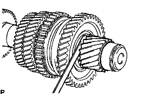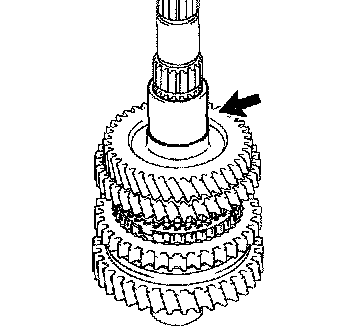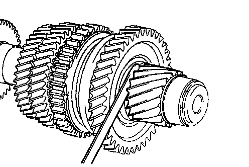 b. Using a feeler gauge, measure the clearance between the synchronizer ring back and gear spline end.