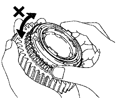 a. Coat the 1ST gear cone with gear oil. Check the braking effect of the synchronizer ring.
