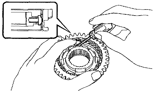 b. Using a screwdriver, install the 3 synchromesh shifting key springs and 3 synchromesh shifting keys.