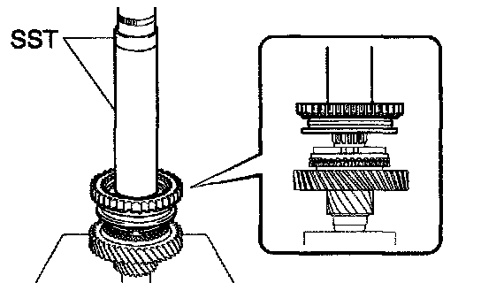 a. Using SST and a press, install 4th driven gear to the output shaft.