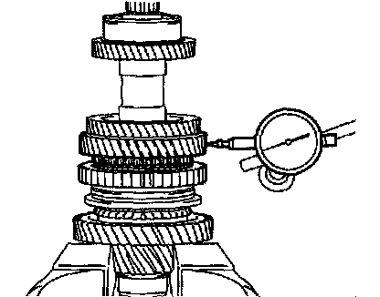 a. Using a dial indicator, measure the 2nd gear thrust clearance.
