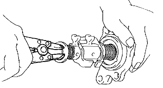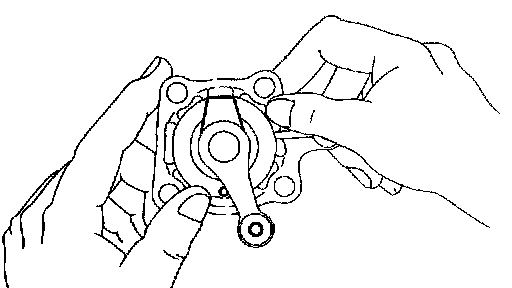 b. Using a snap ring expander and a screwdriver, install the snap ring to the control shaft cover.