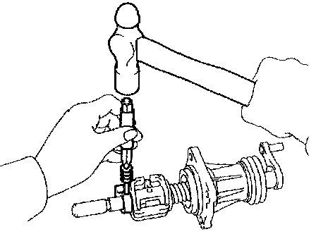 a. Using a pin punch ([diameter] 5 mm) and a hammer, remove the shift lever inner No. 1 slotted pin from the shift & select lever shaft assy.