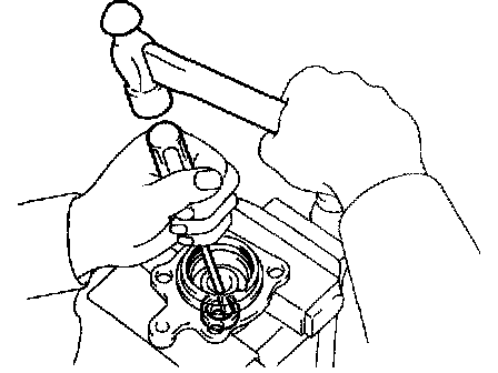 a. Using a screwdriver and a hammer, remove the control shaft cover oil seal from the control shaft cover.