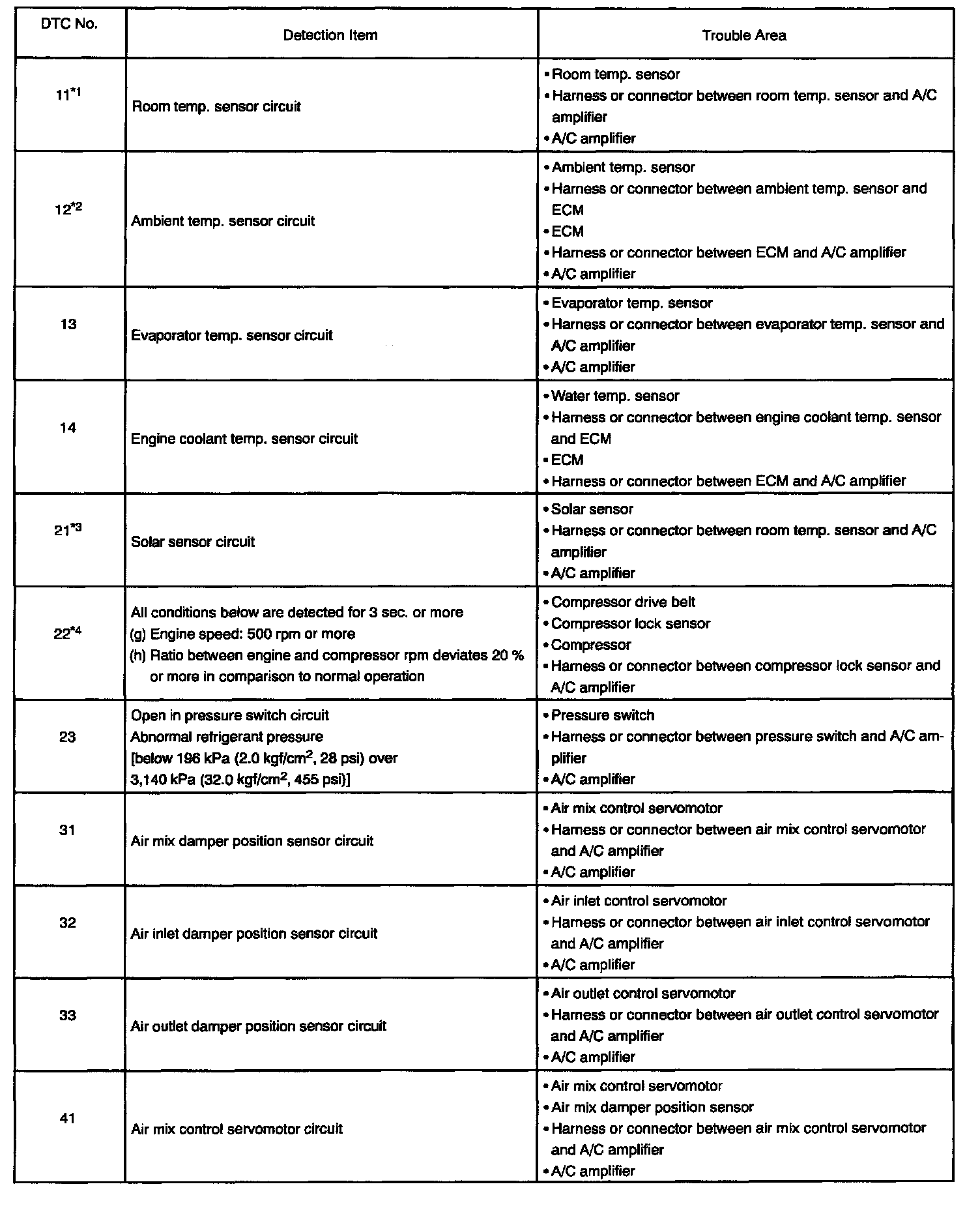 - *3: If the check is being performed in a dark place, DTC 21 (solar sensor circuit abnormal) could be displayed.