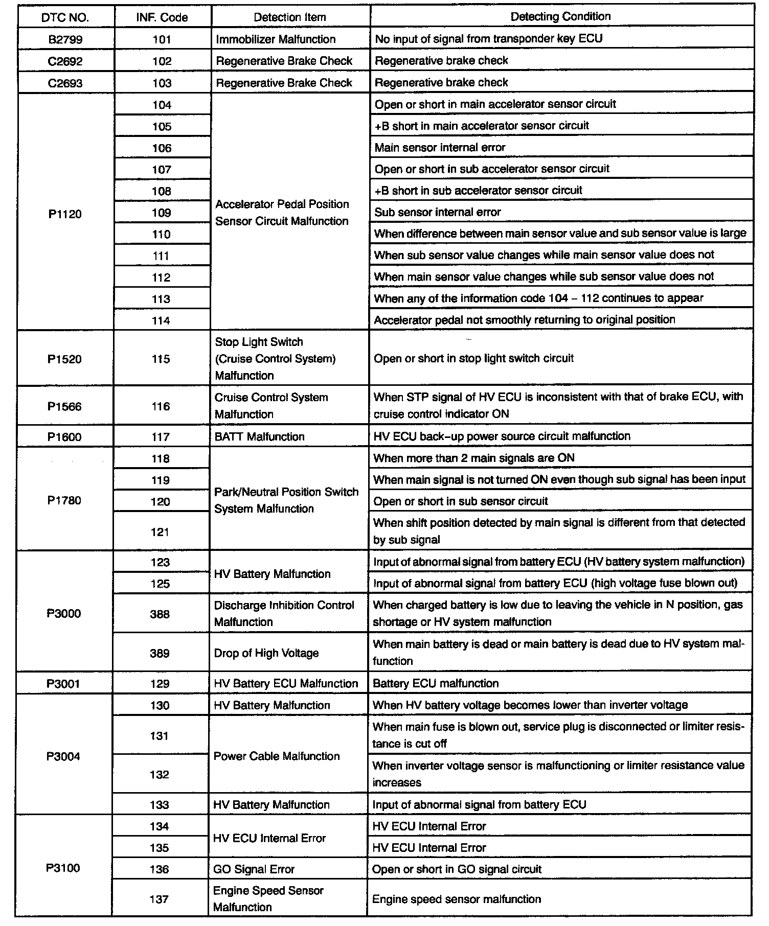 DIAGNOSTIC TROUBLE CODE CHARTB2799, C2692 - C2693, P1120 - P3106: