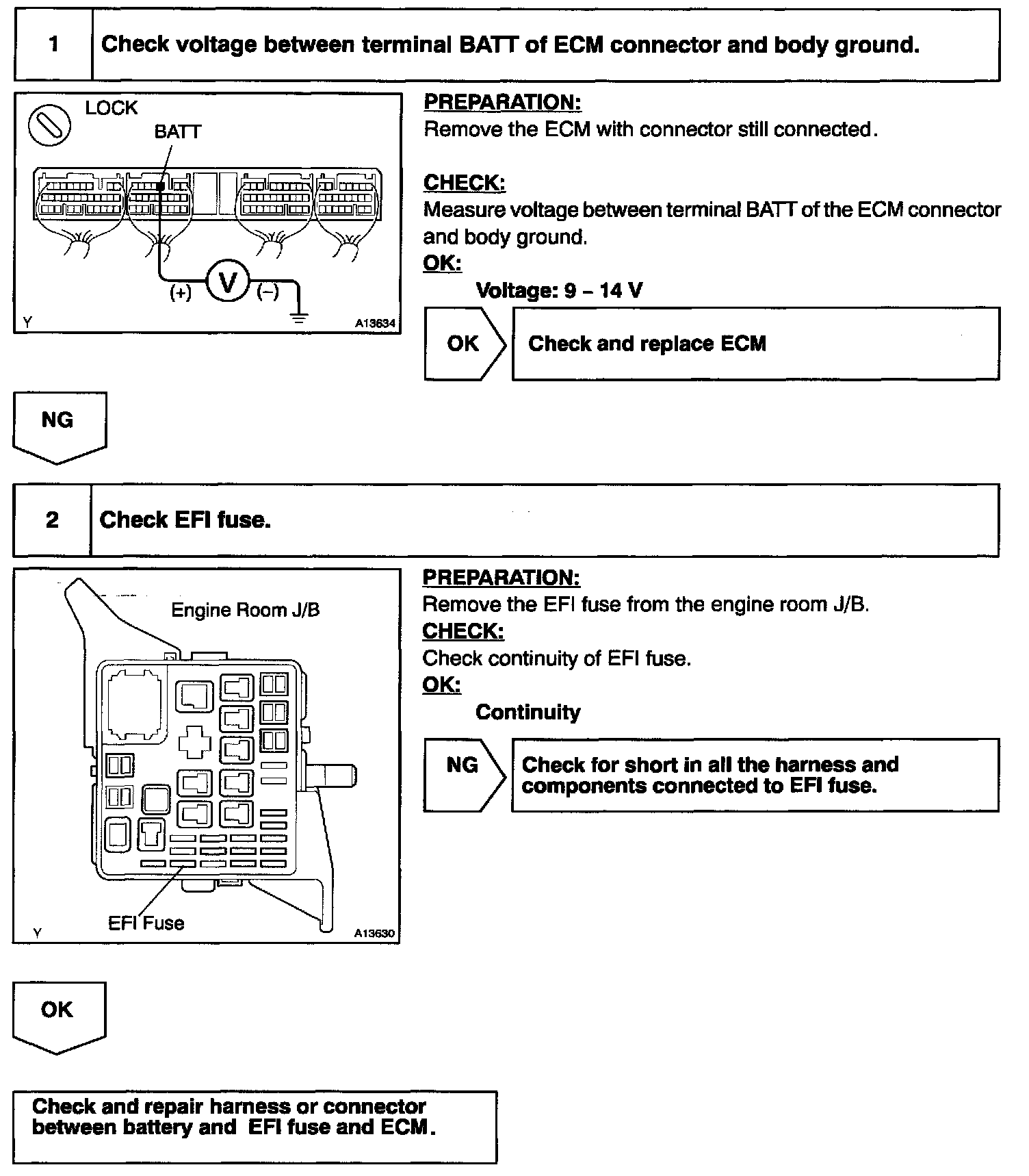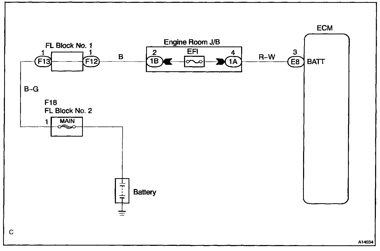 Battery positive voltage is supplied to terminal BATT of the ECM even when the ignition switch is OFF for use by the DTC memory and air-fuel ratio adaptive control value memory, etc.