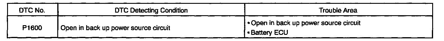 HINT: If DTC P1600 appears, the Battery ECU does not store any other DTC.