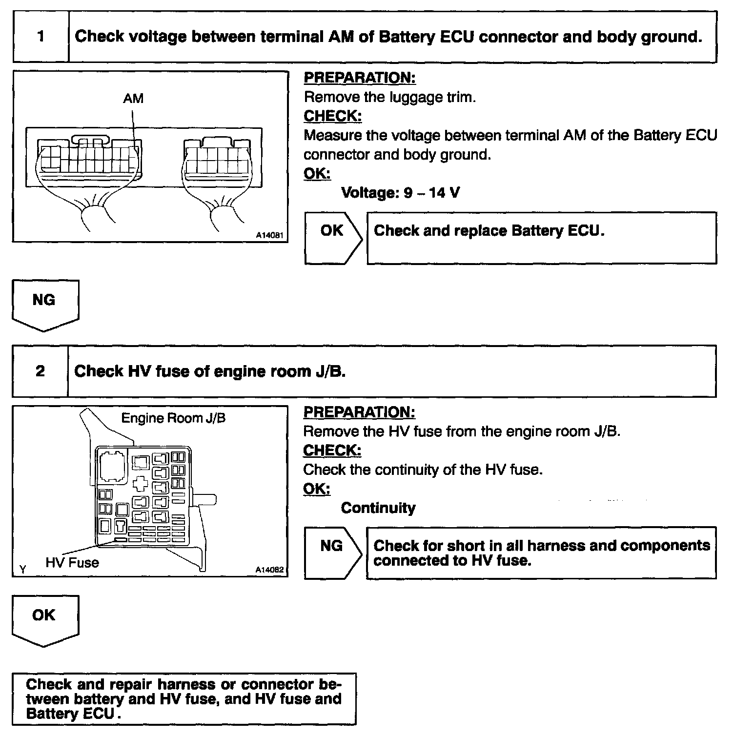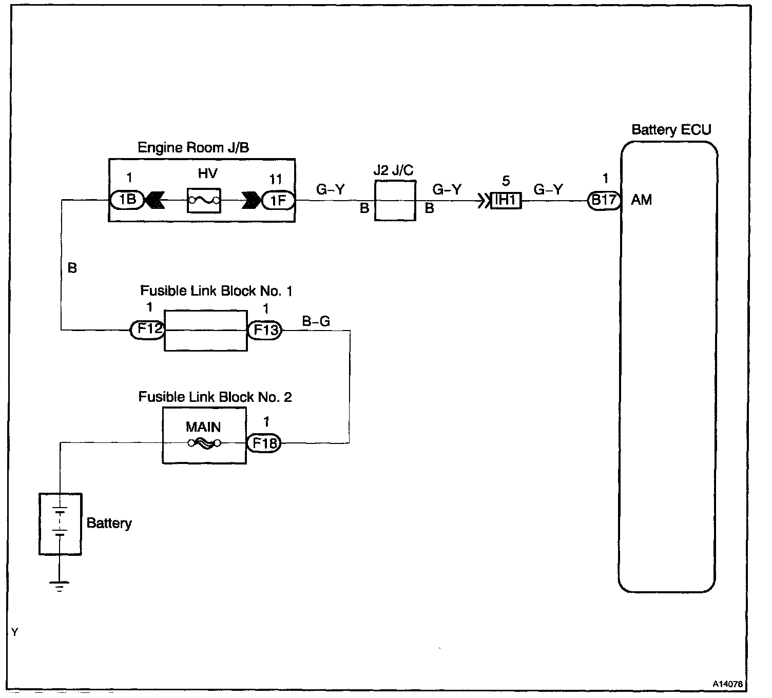 Battery positive voltage is supplied to terminal AM of the Battery ECU even when the ignition switch is OFF to read the DTC memory and freeze frame data adaptive control value memory, etc.