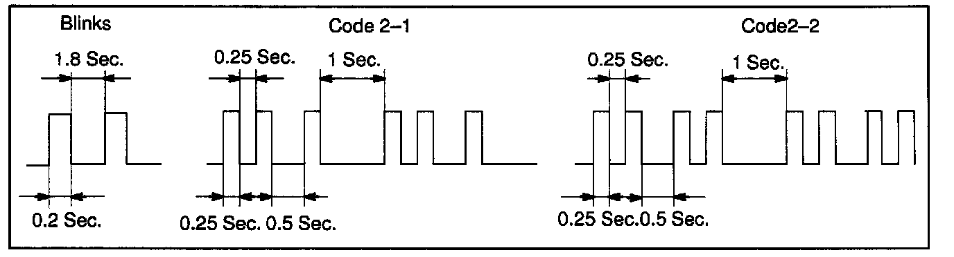 - When key code registration could not be performed on the automatic registration mode, code 2-1 is output from the security indicator and when inserting the already registered key, code 2-2 is output.