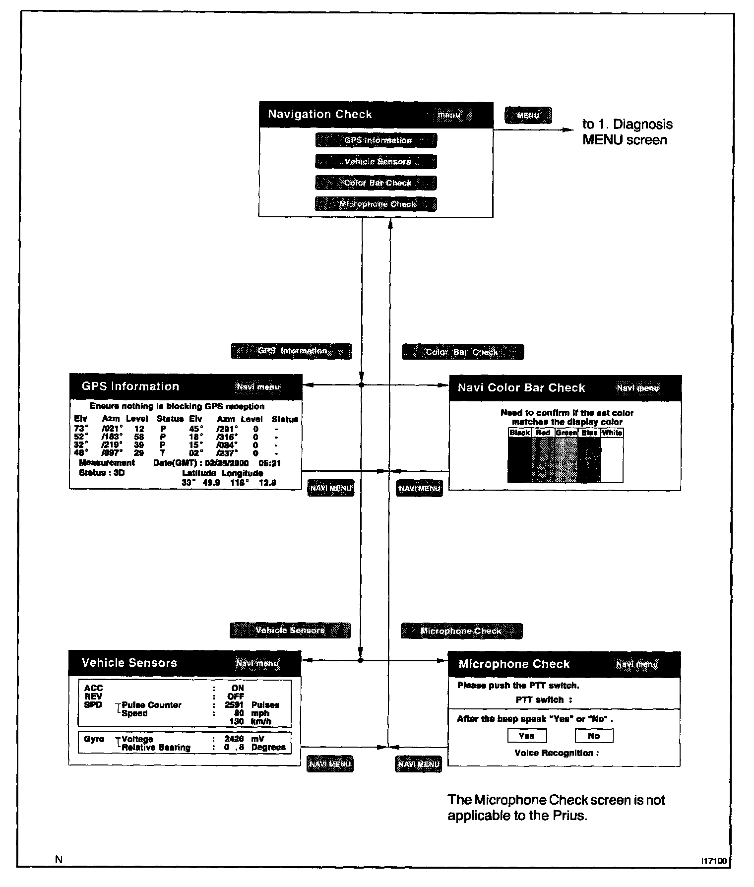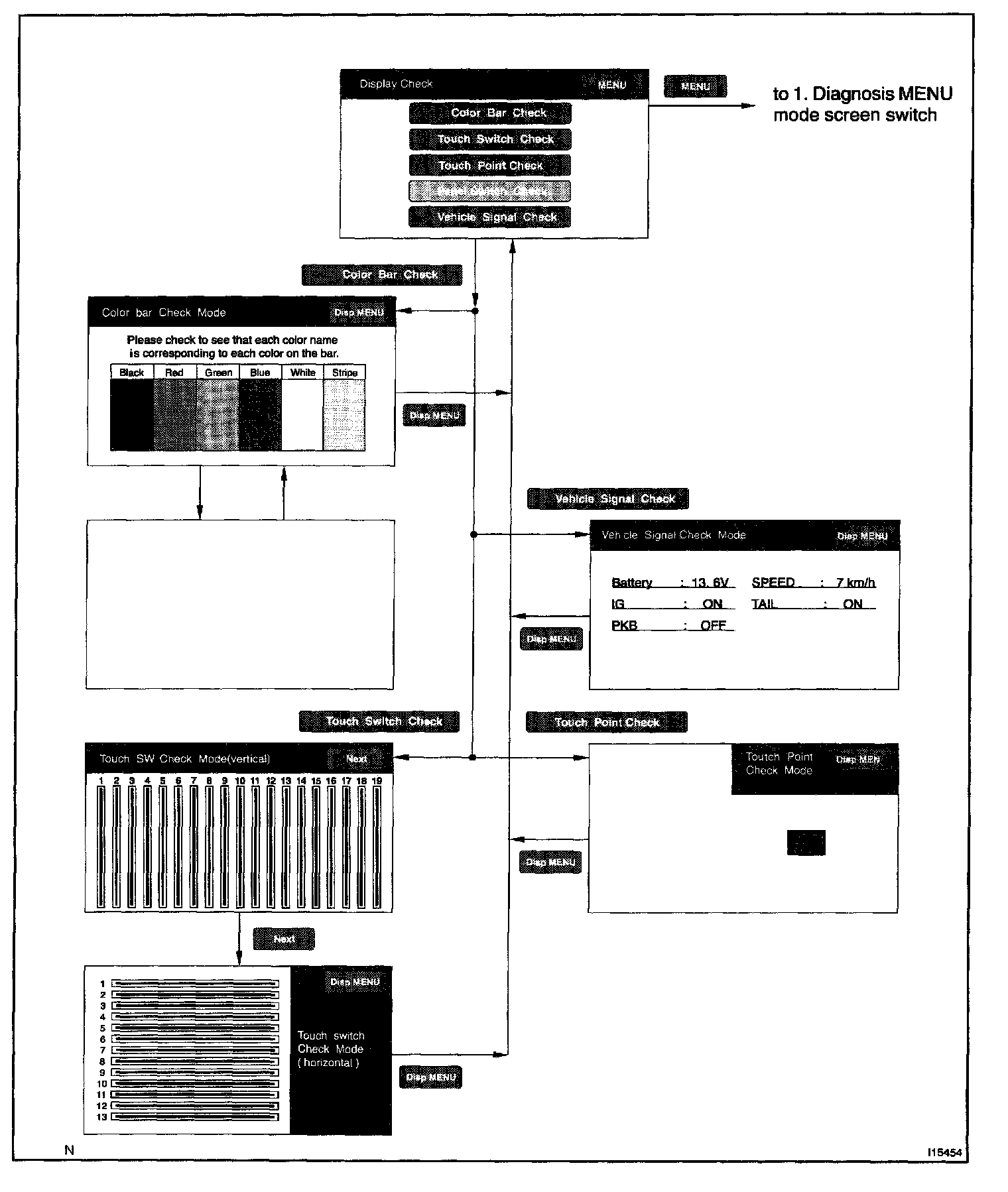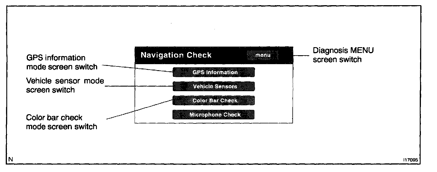 1. Various check screens for the Navigation ECU can be started from this menu screen.