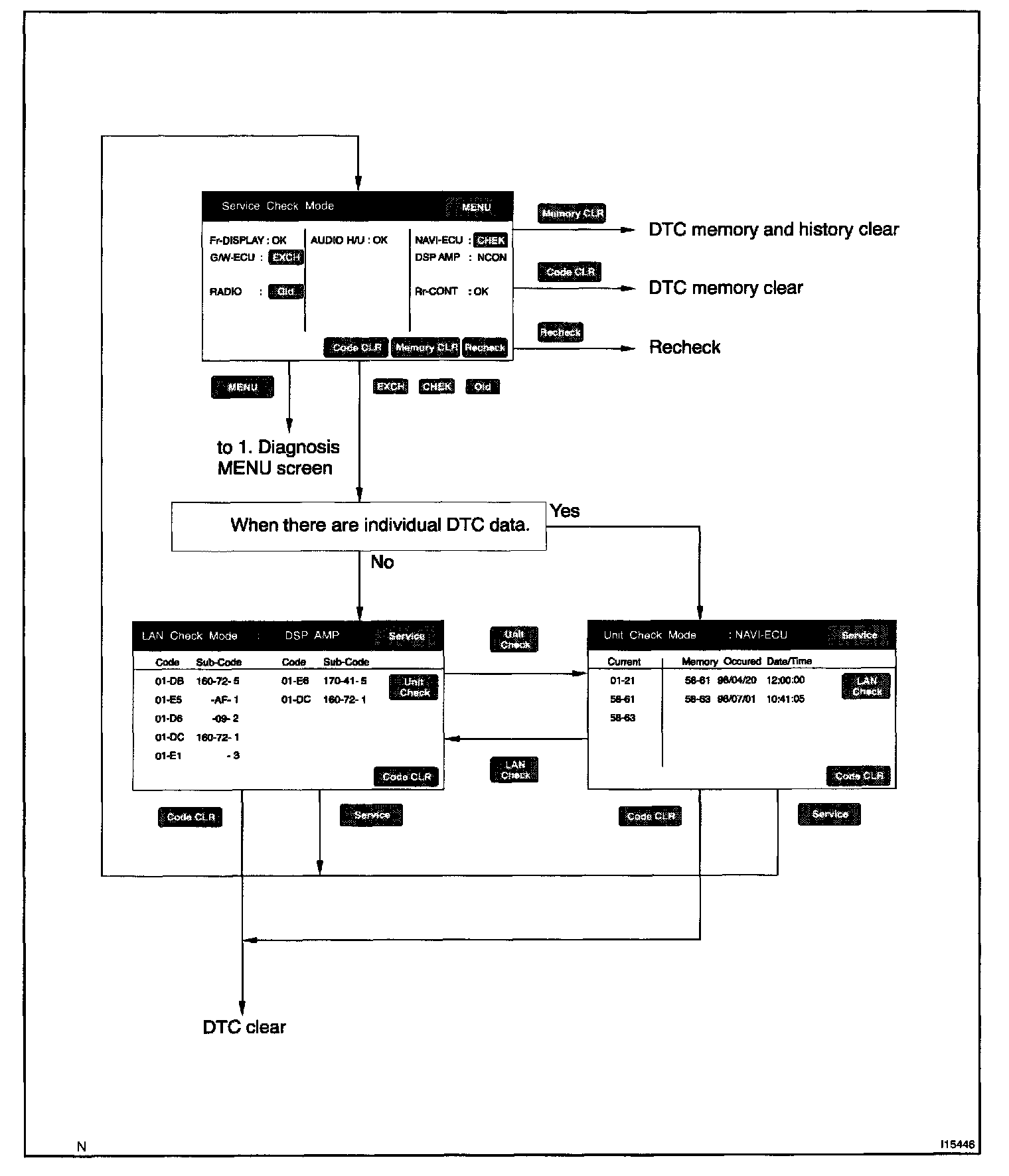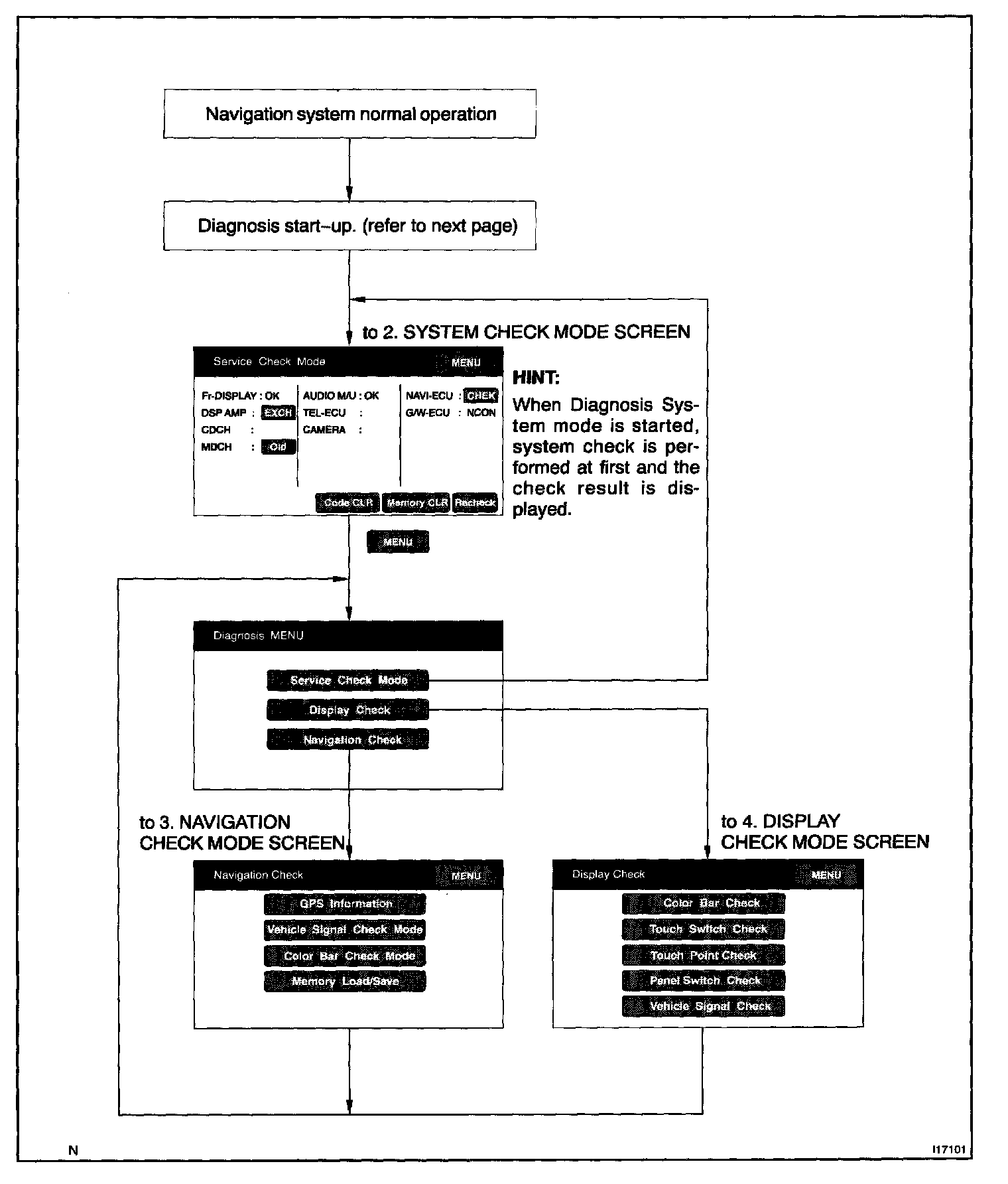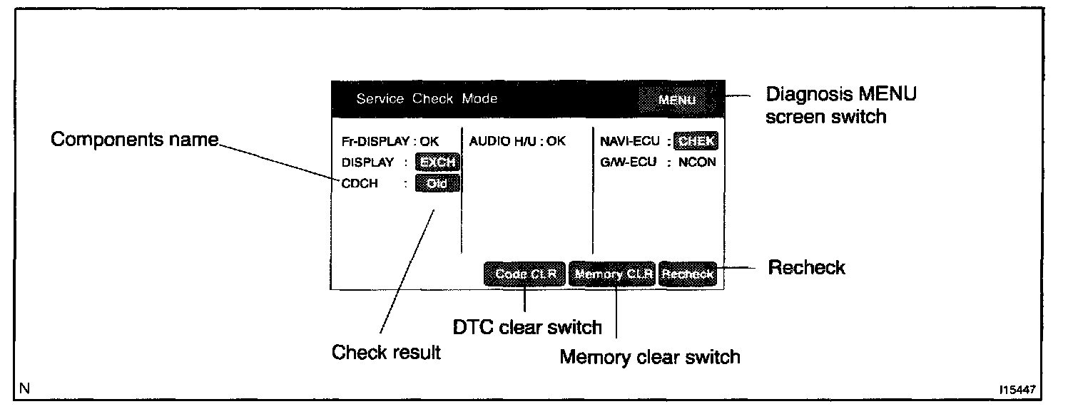 1. Various check screens for the Navigation ECU can be started from this menu screen.