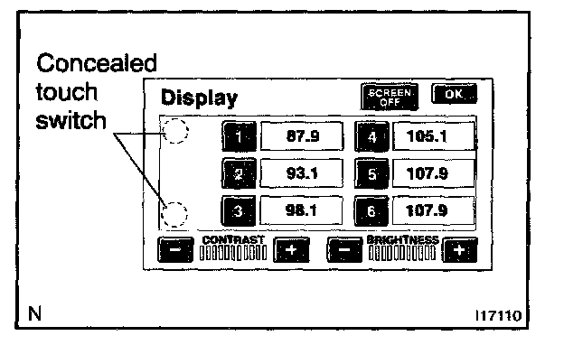 Pressing this switch activates the Touch Switch Check Mode screen.