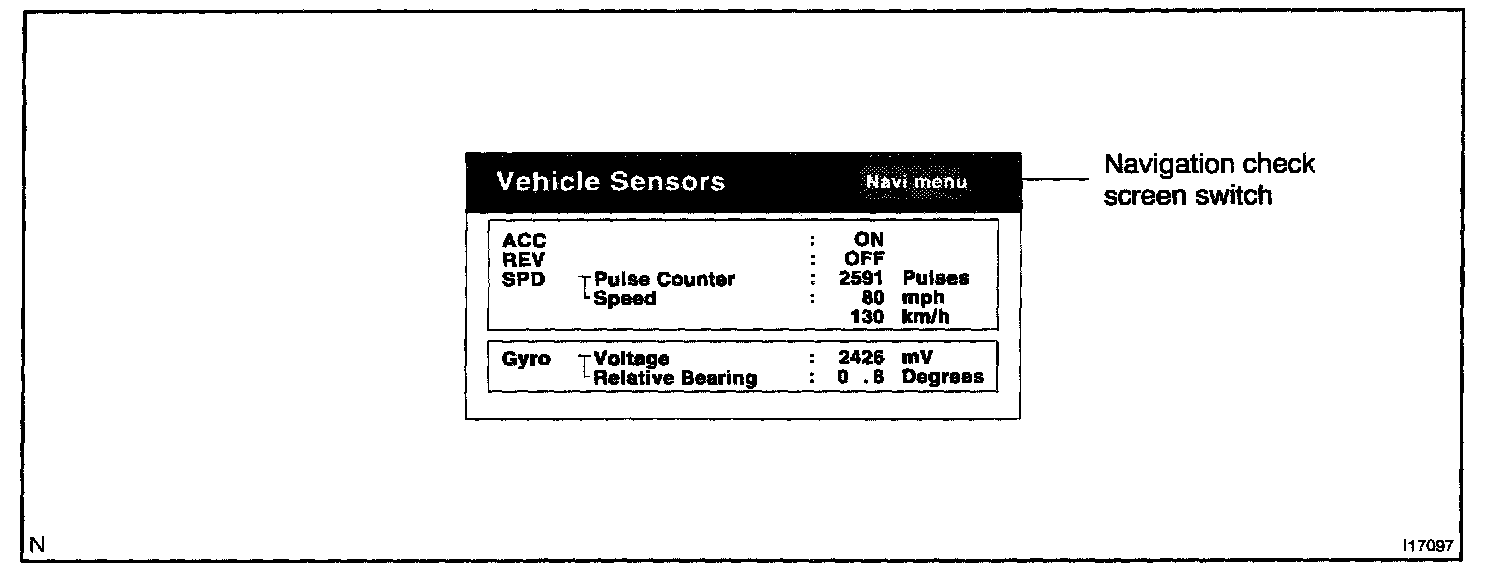 1. Status of the vehicle sensor which are input to the Navigation ECU is checked in this screen.
