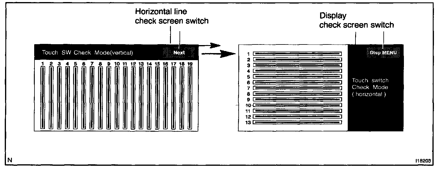 1. Operating condition is checked line by line in the Touch Switch Check Mode screen.