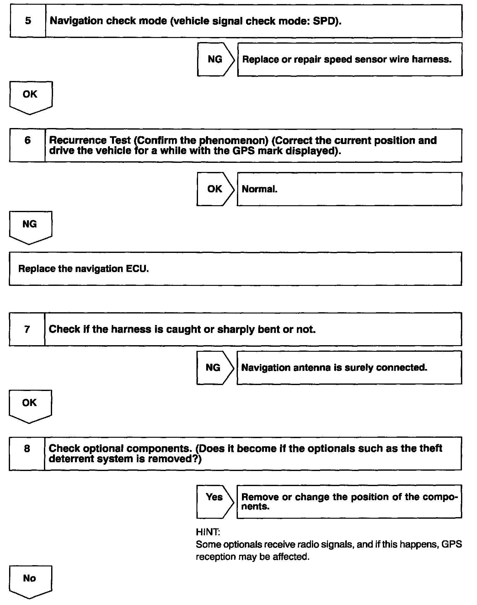 If the trouble still occurs, replace the navigation ECU.