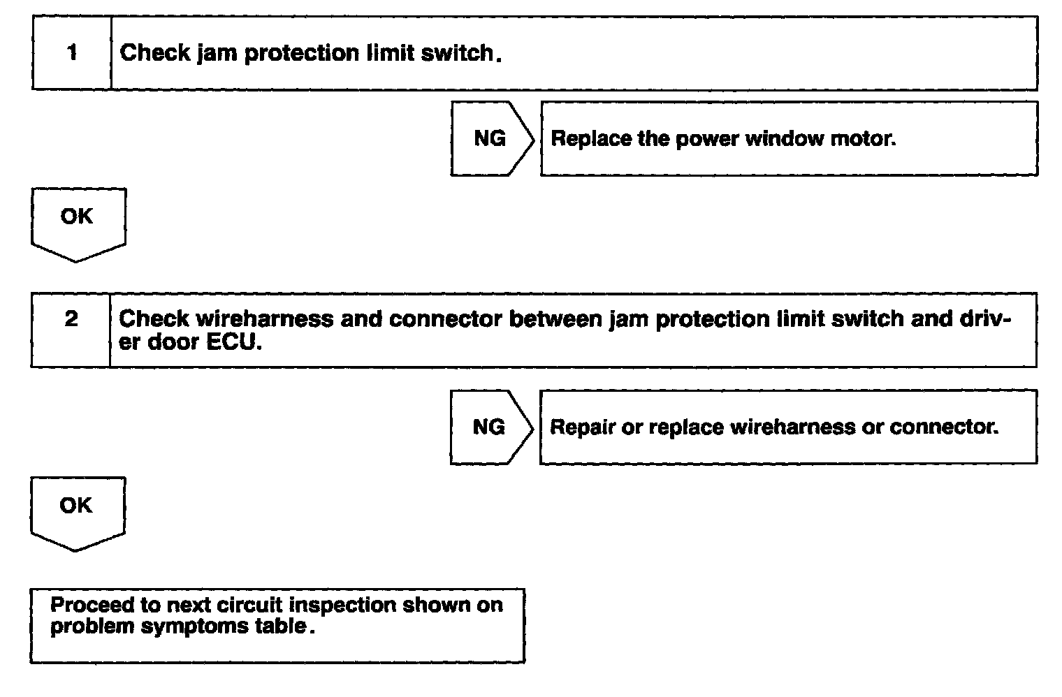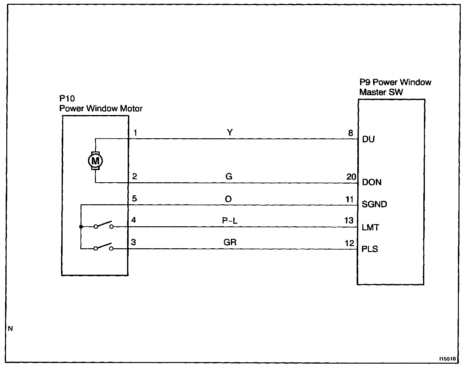 CIRCUIT DESCRIPTIONJam protection limit switch is built-in the power window motor. This switch functions to turn "OFF" before the top dead center, and ECU reads this "OFF" signal resulting in closing the window fully.
