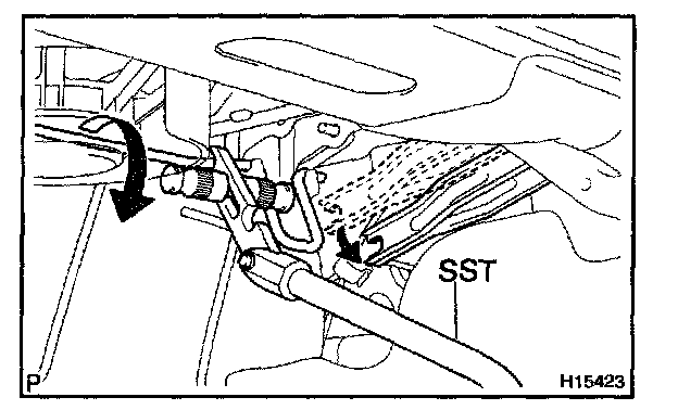 d. Slowly lift SST, and remove the torsion bar from the torsion bar bracket with SST.
