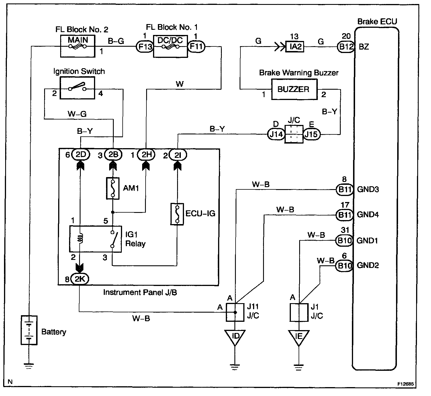 CIRCUIT DESCRIPTIONThe brake warning buzzer sounds while the accumulator pressure is abnormally low.