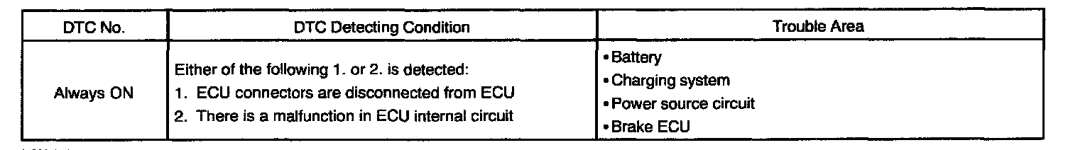 DTC Always ON Malfunction In Brake ECUCIRCUIT DESCRIPTION