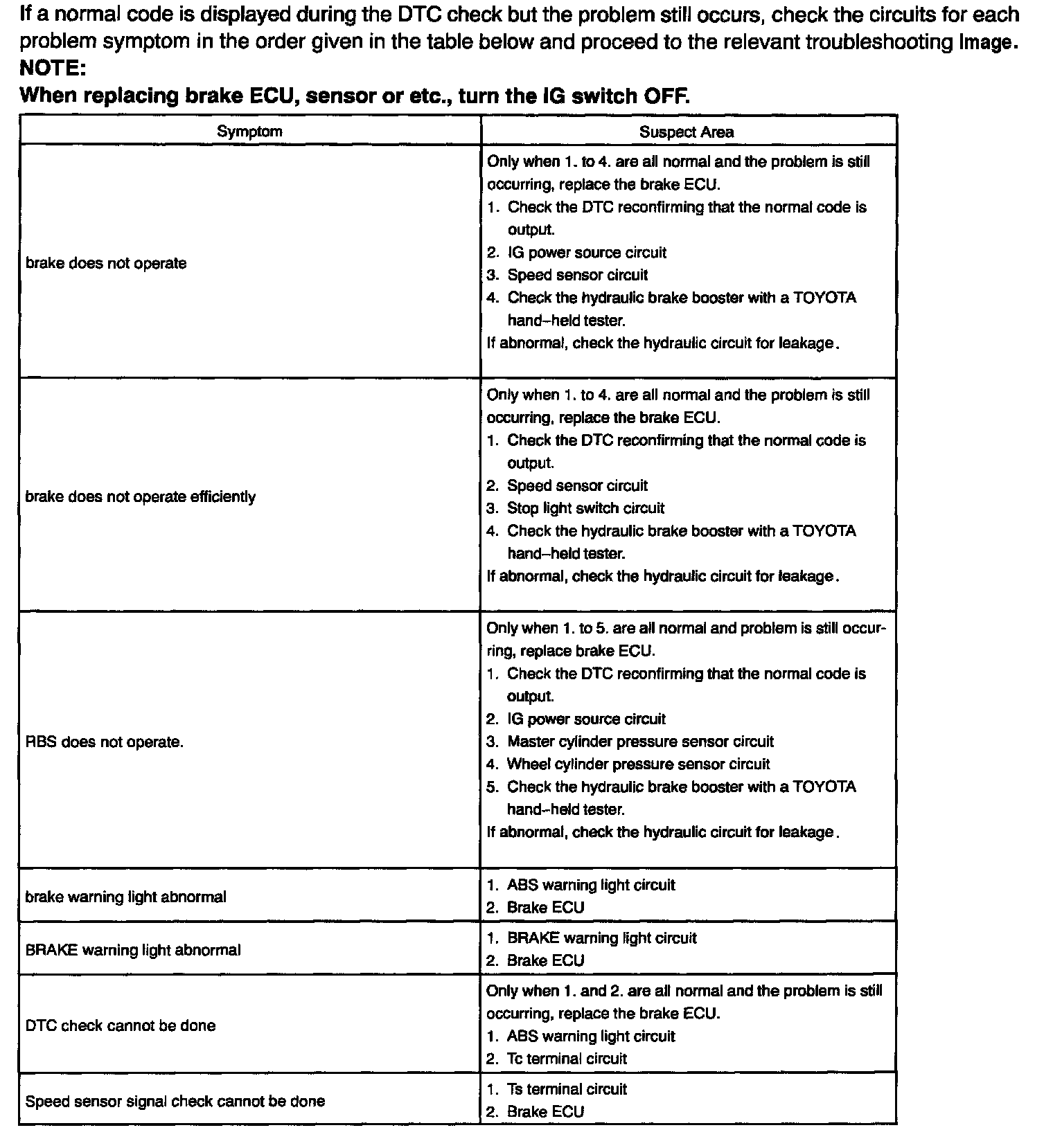 Problem Symptoms Table: