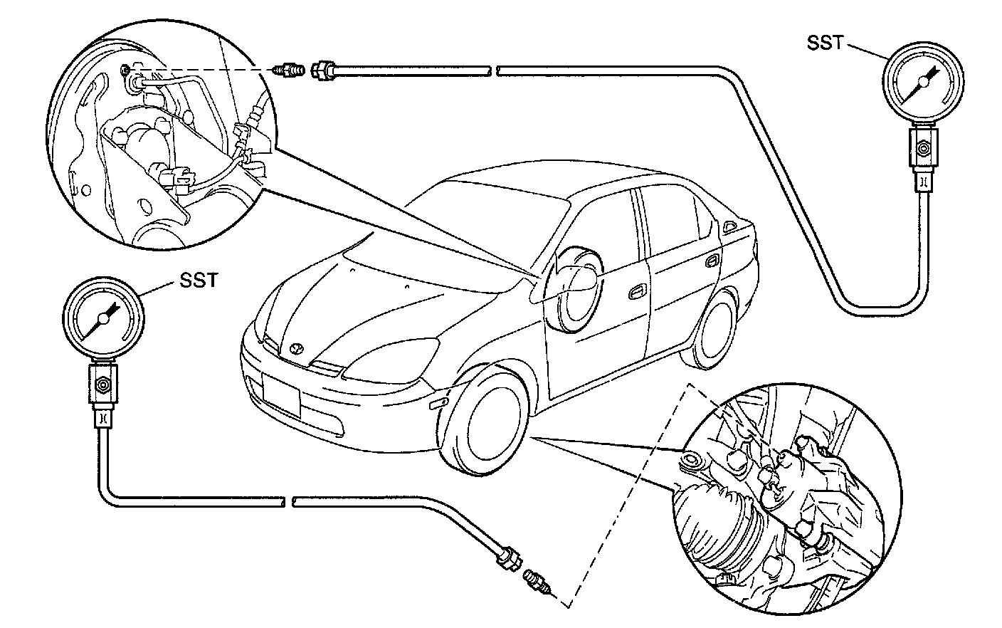 When inspecting the fluid pressure, inspect the left front and right rear together, and the right front and let rear together.