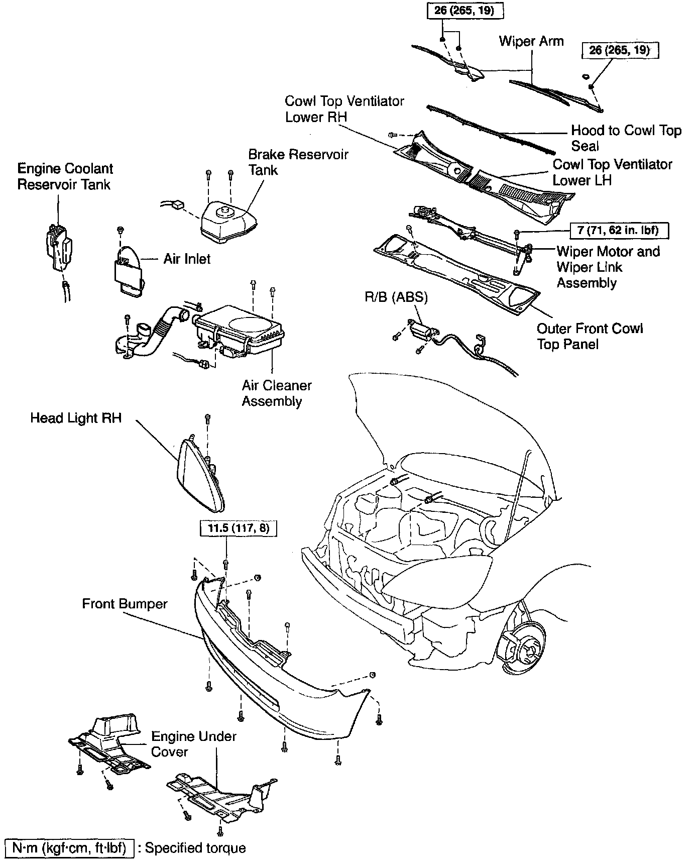Bolt B: 157 Nm (1,601 kgf-cm, 116 ft. lbs.)