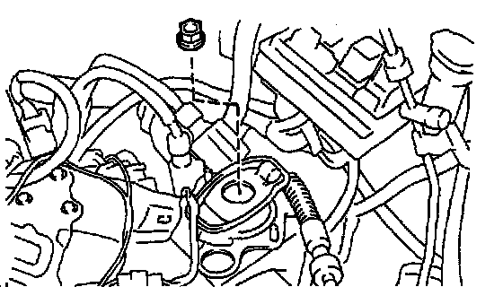 b. Remove the 2 bolts and remove the reservoir tank and suspend it.