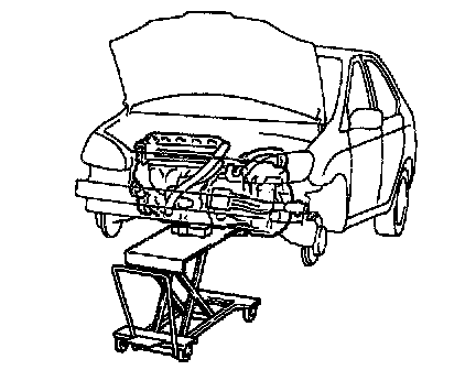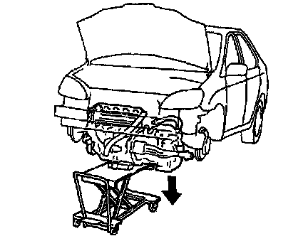 b. Using a engine sliding device, and place the engine and transaxle assembly onto the stand.
